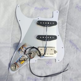 HSS Prewired Pickguard Loaded with Alnico 5 Pickups – Black with Ivory (Push Pull Coil Split Mod)